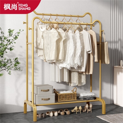 枫尚(MAPLE FASHION)晾衣架落地简易衣架卧室挂衣架多功能衣服架简易阳台衣架杆2110J 升级款1米金色 双杆可置物 |