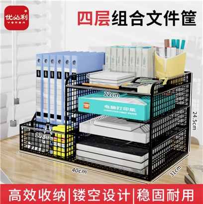 优必利 办公室桌面文件收纳架 金属网文件框 8909 |