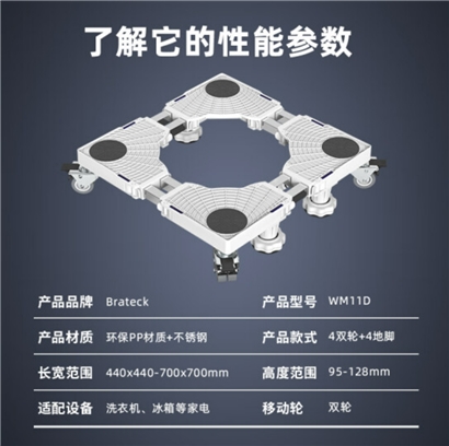 Brateck北弧洗衣机底座海尔洗衣机支架冰箱底座架垫高滚筒洗衣机托架移动架子洗衣机架小天鹅西门子美的WM11D |