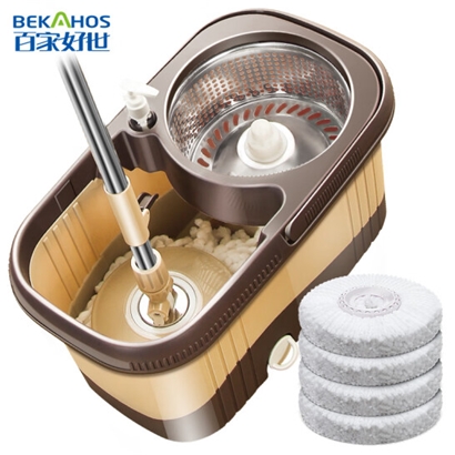 百家好世 免手洗旋转拖把-小方桶塑盘(4个头)吸水托布家用拖地桶懒人拖把木地板墩布拖地神器 |