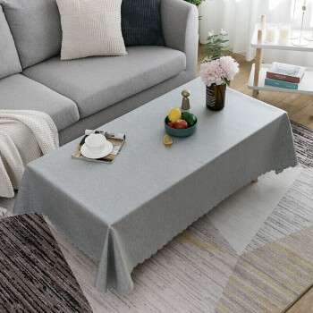 铭聚布艺(MINGJU) 餐桌布 防水防油TPU桌布 布艺台布餐桌垫定制茶几布银灰90*150cm