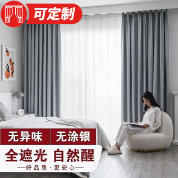 铭聚布艺(MINGJU) 窗帘 全遮光窗帘成品窗帘布遮阳帘 涤塔夫浅灰挂钩式1.5*2.0单片(不包含安装) |
