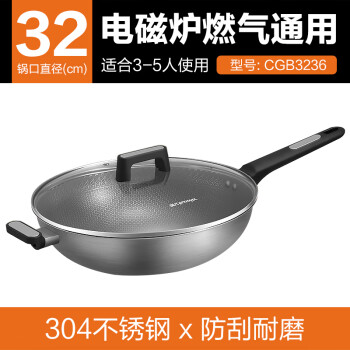 九阳(Joyoung)炒锅 304不锈钢蜂窝 不粘炒菜锅加大平底煎锅电磁炉燃气通用32cm |