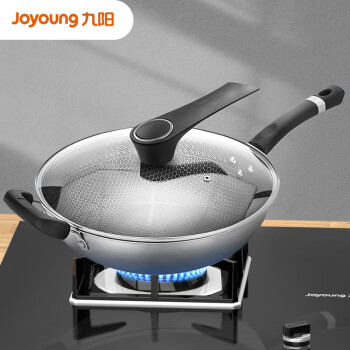 九阳(Joyoung)炒锅不粘锅34cm平底炒菜锅304不锈钢蜂窝炒菜锅电磁炉煤气灶通用