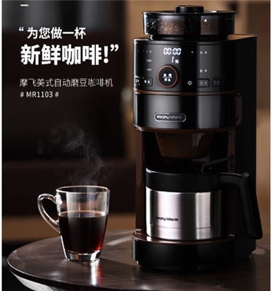 摩飞电器(Morphyrichards)MR1103咖啡机全自动磨豆家用咖啡机不锈钢保温咖啡壶 豆粉两用