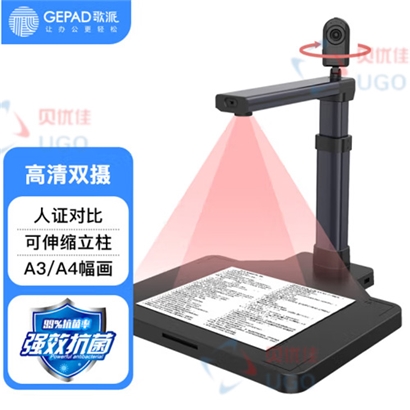 歌派(GEPAD)HP-2103DSP 高拍仪 2100万+500万高清双摄 硬底A4幅面 远程教学网课 连续扫描 照片证件扫描 |