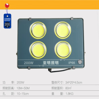 亚明LED投光灯户外防水芯200W工厂房车间工程工地照明探照方射灯 |