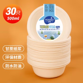优奥 一次性碗500ml(30只装)纸碗可降解一次性餐具汤碗野餐小圆碗 |