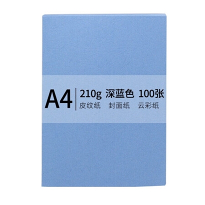传美 A4 210g 皮纹纸 封面纸 云彩纸 封皮纸 彩色卡纸 标书装订封面纸 深蓝色 单包装 100张/包 |
