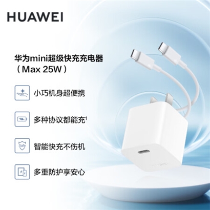 华为mini超级快充充电器(Max25W)线充套装 附Type-C转Type-C线/兼容PD 20W/适配苹果手机/智能快充 |