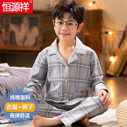 恒源祥春夏季儿童睡衣套装春秋纯棉薄款空调家居服男童空调服中大童男孩 小绅士 140cm |
