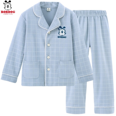 巴布豆儿童睡衣春夏长袖男童家居服套装男孩空调服宝宝中大童 浅蓝BBD6575 130cm适合(120-130)cm