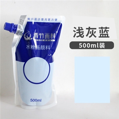 青竹画材(CHINJOO)水粉颜料补充包美术生专用绘画广告画500ml大容量袋装水粉颜料 浅灰蓝 |