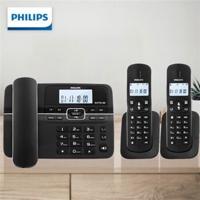 飞利浦DCTG188数字无绳电话机办公家用座机电话子母机免提/一键拨号/一拖二(黑色)HWDCD9889(188)TSD |