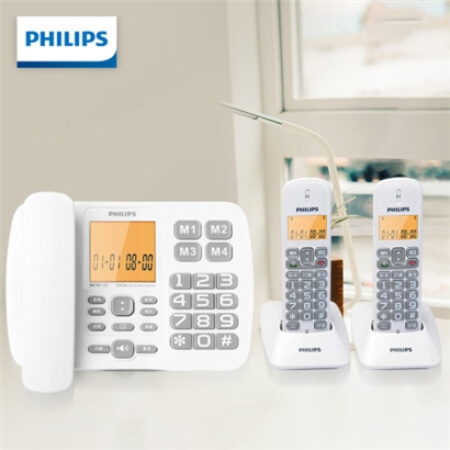 飞利浦(PHILIPS)无绳电话机 固定座机 子母机 家用办公 一键拨号 三方通话 DCTG152一拖二 (白色) |