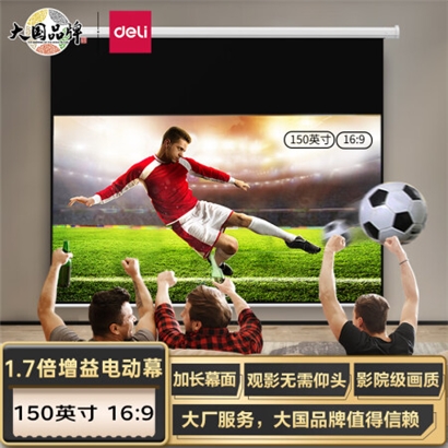 得力(deli)150英寸16:9遥控电动投影幕布50456S(配备遥控器 投影布简易家用投影机投影仪幕布) |