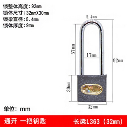 三环 铁挂锁直开锁房门锁橱柜仓库锁具挂锁长梁锁 L363铁长梁32mm-通开(定制)10把锁配1把钥匙 |
