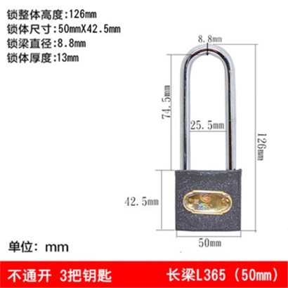 三环 铁挂锁直开锁房门锁橱柜仓库锁具挂锁长梁锁 L365铁长梁50mm-不通开 |