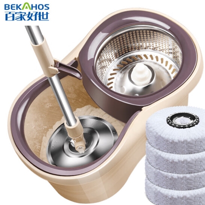 百家好世 大号免手洗旋转拖把-小蛮腰钢盘(4个头)家用卫生间拖地神器吸水墩布懒人旋转拖把桶- |
