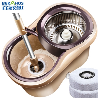 百家好世 双驱动免手洗旋转拖把-小蛮腰(2个头)手压免手洗家用木地板托把拖地神器 |