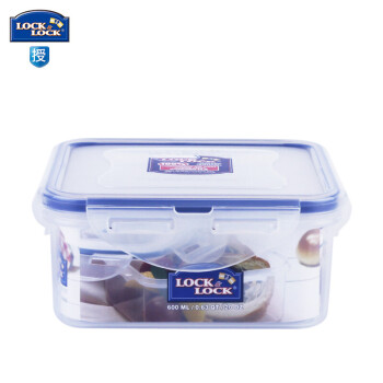 乐扣乐扣 正方形塑料保鲜盒 冰箱收纳储物盒饭盒微波炉便当盒密封餐盒便携水果食品盒600ml