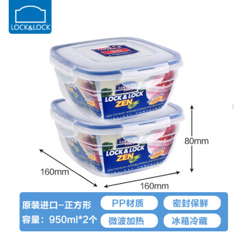 乐扣乐扣 进口保鲜盒两件套 微波炉饭盒塑料餐盒密封便当冰箱收纳盒正方形 950ML*2 |
