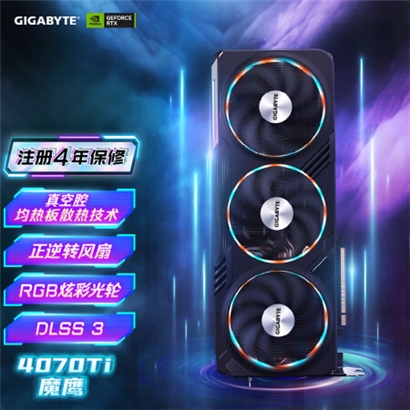 技嘉魔鹰GIGABYTE GeForce RTX 4070TI Gaming OC 12G 电竞游戏设计智能学习电脑独立显卡支持4K