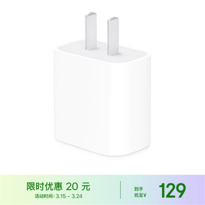 Apple 20W USB-C手机充电器插头 快速充电头 手机充电器 适配器 适用iPhone13/iPhone14/iPad 快充插头 |