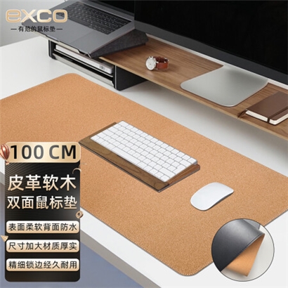 宜适酷(EXCO)软木双面多用皮质100*50cm鼠标垫超大号桌垫子长办公桌垫电脑写字书桌皮革纯色防水游戏键盘黑色+软木9710 |