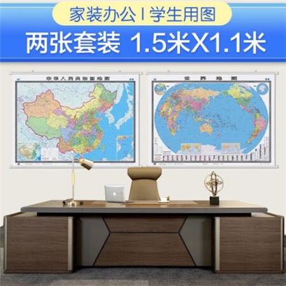 全新修订 中国地图挂图+世界地图挂图(1.5米*1.1米 学生、办公室、书房、家庭装饰挂图 套装2张 无拼缝) |