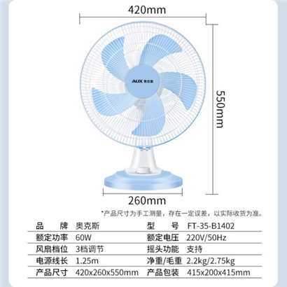 奥克斯(AUX)升级款14寸大风扇 电风扇/台扇/家用学生宿舍转页扇台扇/摇头台式桌面风扇FT-35-B1402 |