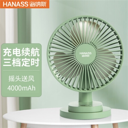 海纳斯(HANASS)电风扇 桌面风扇 台式摇头usb充电大容量4000mAh 宿舍轻音便携迷你小风扇 A5FAN |