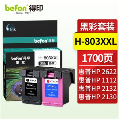 得印803墨盒 大容量 黑彩套装升级版可加墨 适用惠普HP1112 2131 1111 2132 2621 2622 2623 2628打印机 |