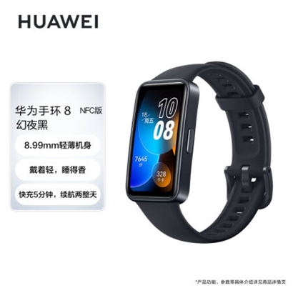 华为HUAWEI手环8 NFC版 幻夜黑 华为运动手环 智能手环 8.99毫米轻薄设计 心率、血氧、睡眠监测 磁吸快充 |