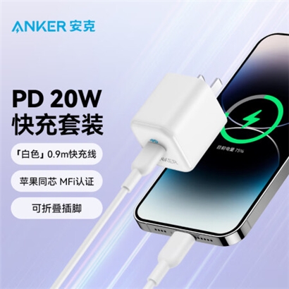 ANKERAnker PD20W快充充电器 白+Anker C to L PD快充数据线 0.9米白 |