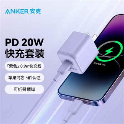 ANKERAnker PD20W快充充电器 紫+Anker C to L PD快充数据线 0.9米紫 |