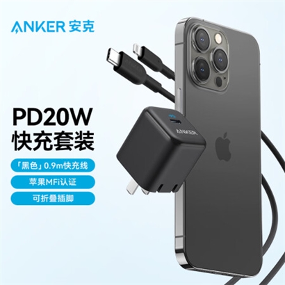 ANKERPD20W快充充电器 黑+Anker C to L PD快充数据线 0.9米黑 |