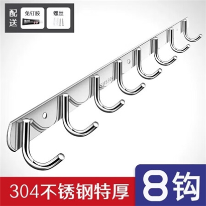 馨沛304不锈钢挂钩挂衣钩排钩免打孔加厚卫生间门后置物架浴室粘钩8钩 |