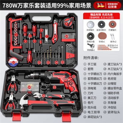 欧莱德(OULAIDE)手电钻冲击钻多功能两用电钻维修套装木工电工五金工具箱套装 |
