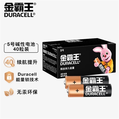 金霸王(Duracell)5号电池40粒装碱性干电池五号 适用耳温枪/血氧仪/鼠标血压计电子秤遥控器儿童玩具 |