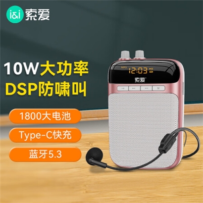 索爱(soaiy)S-318PRO小蜜蜂扩音器教师专用智能防啸叫10W麦克风蓝牙喇叭导游导购音箱讲Type-C大功率PLUS版 玫瑰金 |