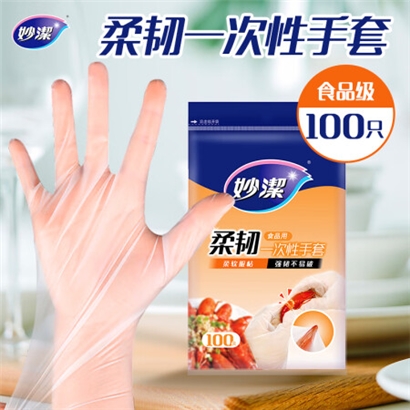 妙洁 柔韧一次性手套 100只装 厨房食品级 柔软服帖 强韧不易破 |