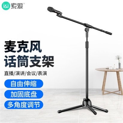 索爱(soaiy)MZ6 麦克风话筒支架话筒架 麦架落地直播钢管管体伸缩三脚架录音舞台支架设备配咪夹(单杆)M9 |