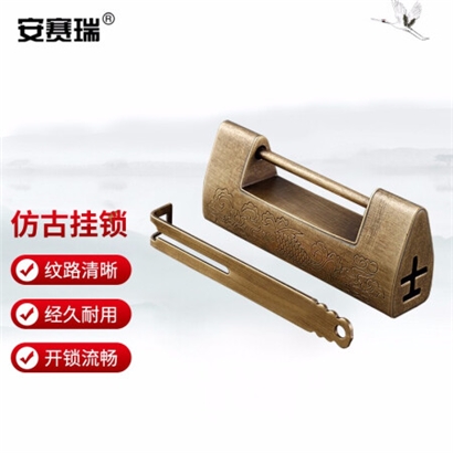 安赛瑞 仿古横开挂锁 老式刻花插销黄铜压花锁 12cm古铜色 5D00150 |