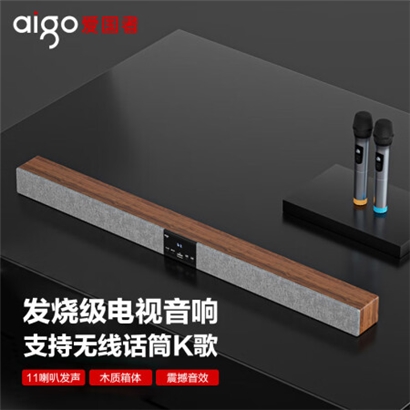 爱国者 回音壁 条形电视音响 音箱 蓝牙5.0立体环绕声家庭影院 客厅壁挂音响 T102双咪升级版 原木色 |