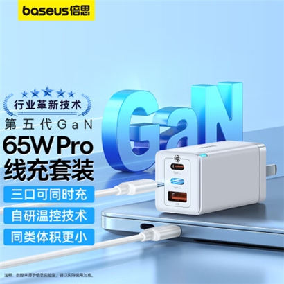 倍思 氮化镓GaN五代65W充电器套装多口PD快充头 适用苹果14/13/12华为小米macbook笔记本 |