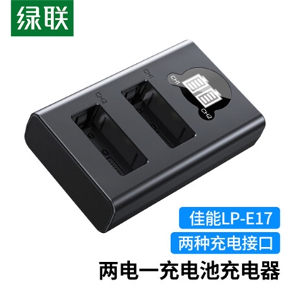 绿联LP-E17相机电池充电器适用200D二代佳能EOS 850D/800D/750D/77D/760D/M6/M5/R8/R10/R50双口充电器 |