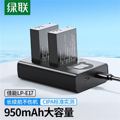 绿联LP-E17相机电池套装适用200D二代佳能EOS 850D/800D/750D/77D/760D/M6/M5/R8/R10/R50单反数码相机 |