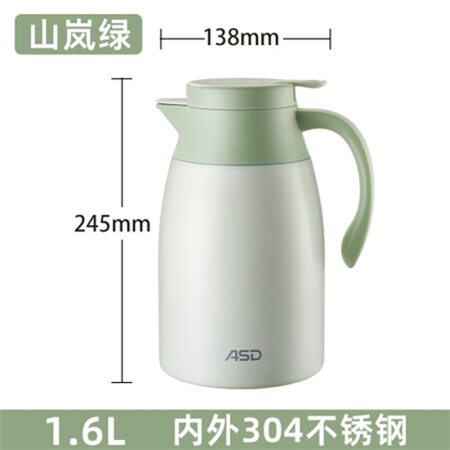 爱仕达(ASD)保温壶家用1.6L按压式内外不锈钢暖水壶热水瓶山岚绿RWS16P8WG-G |