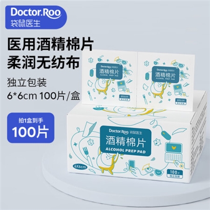 袋鼠 75%酒精棉片消毒湿巾家用独立包装擦手机皮肤消毒6×6cm100片/盒 |